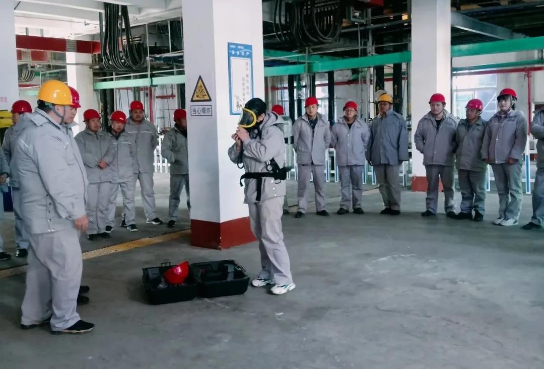 隨后,安環(huán)科準(zhǔn)備出防化服與空氣呼吸器,在師傅們的耐心講解下,許多員工主動去試穿演練。