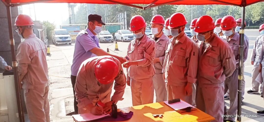 ▲公司熱電廠學員接受沂水熱電廠入廠信息登記和體溫測量,并保證嚴格遵守防疫制度。