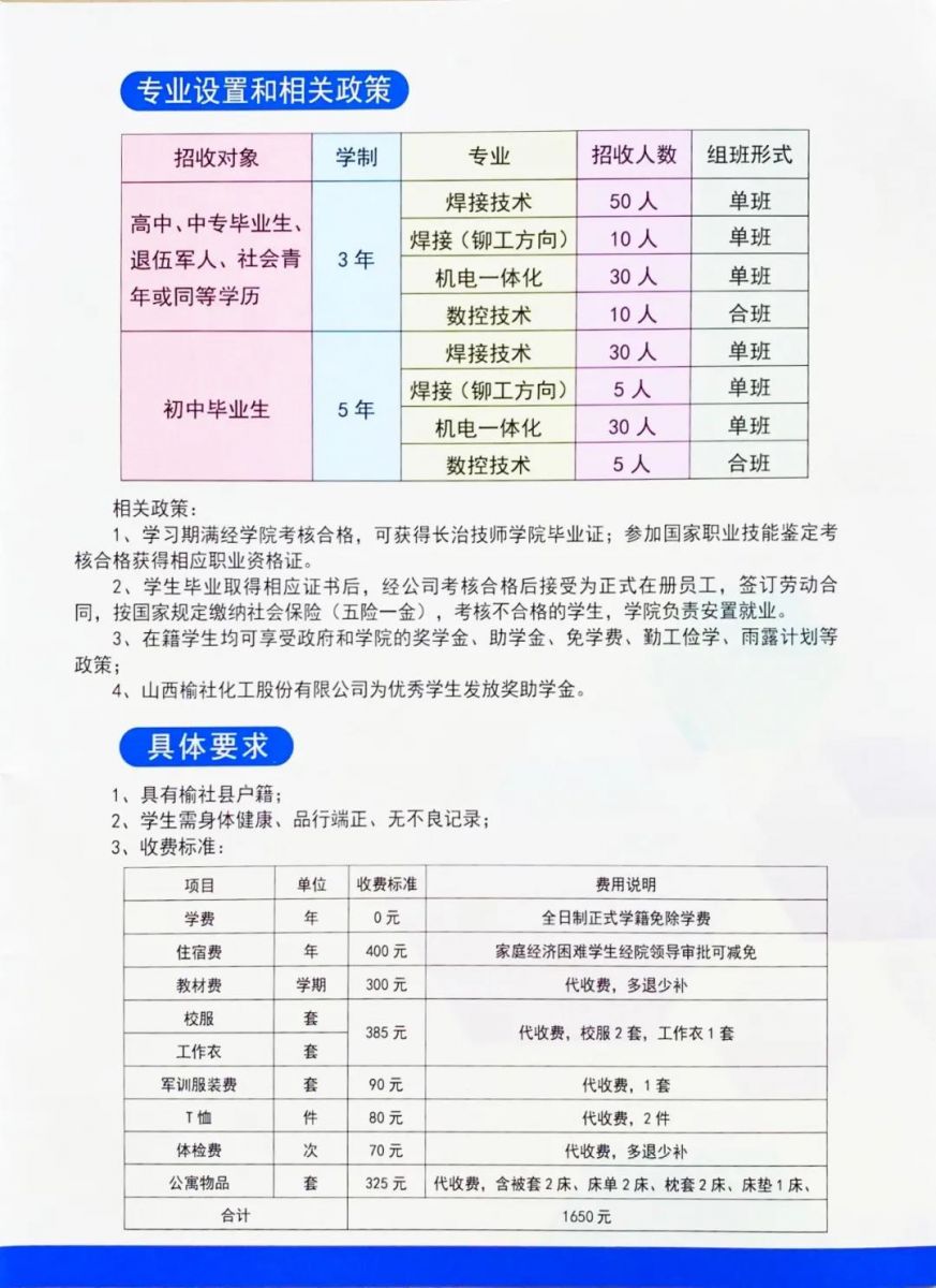 榆社化工定向班招生簡(jiǎn)章